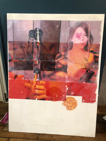 Le travail sur la représentation du corps et du vivant est poursuivi ici avec la matière du médium photographique. Les empreintes lumineuses sont collées sur plusieurs supports (mur, planche de bois). A travers les différentes superpositions et interventions graphiques et picturales émergent une nouvelle figuration. Les images sont retravaillées de manière différente, l’usure n’est jamais la même. Les collages/pellicules/couches forment un ensemble qui se présente comme le développement de la représentation initiale. La question : qu’est-ce qu’avoir un corps? rejoint la question: qu’est-ce que la photographie? .